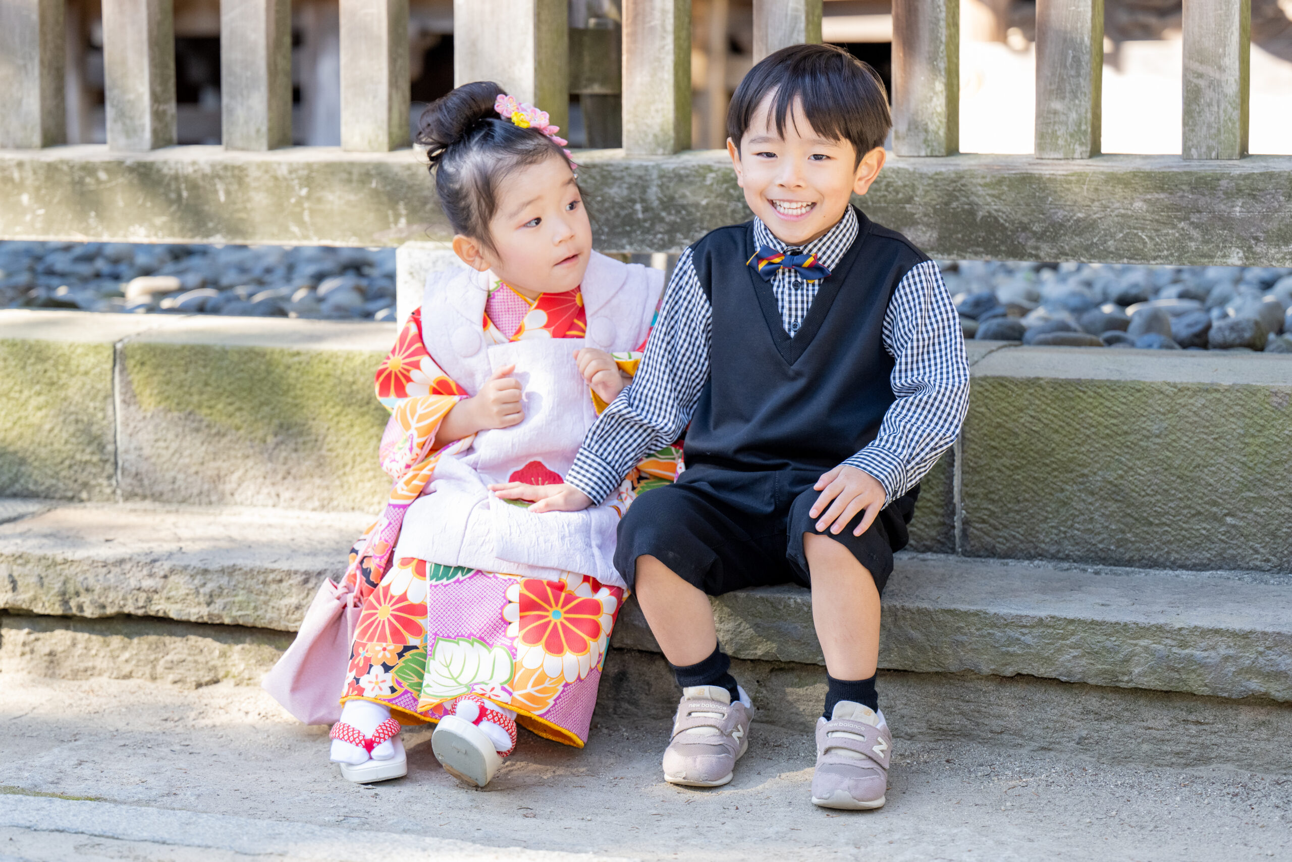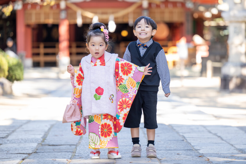 【撮影レポ】3歳女の子の七五三 in 越谷久伊豆神社|元気いっぱいのお兄ちゃんと一緒に