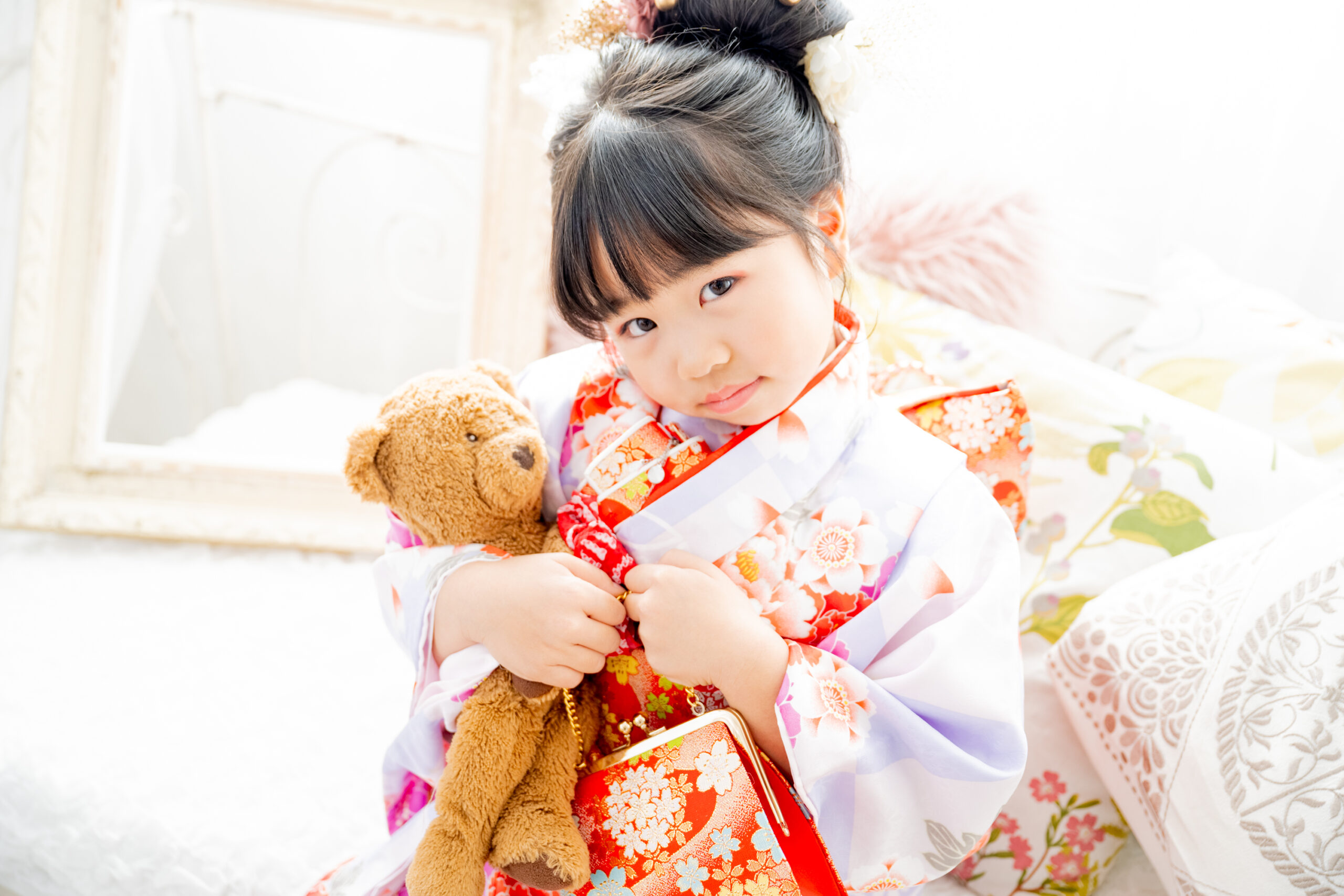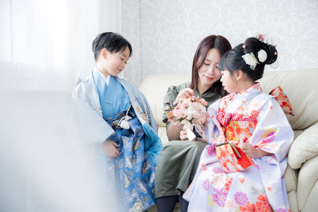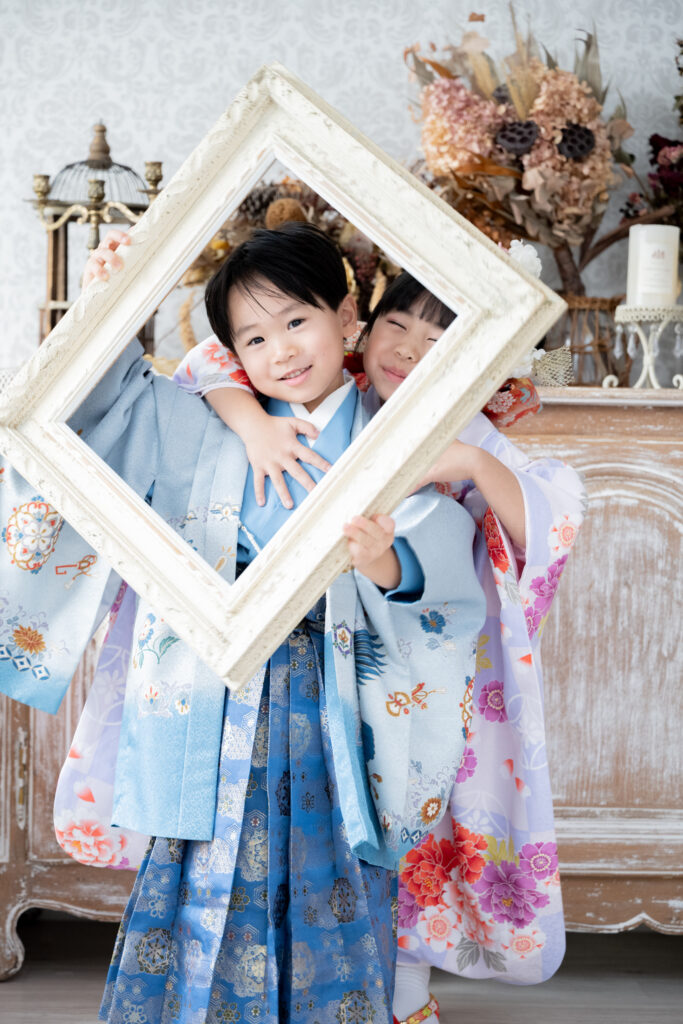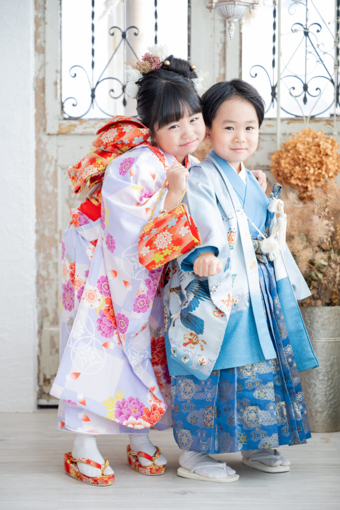 今回は、7歳の七五三を迎える女の子と、4歳の弟くんという仲良し兄妹のスタジオ撮影をさせていただきました。
