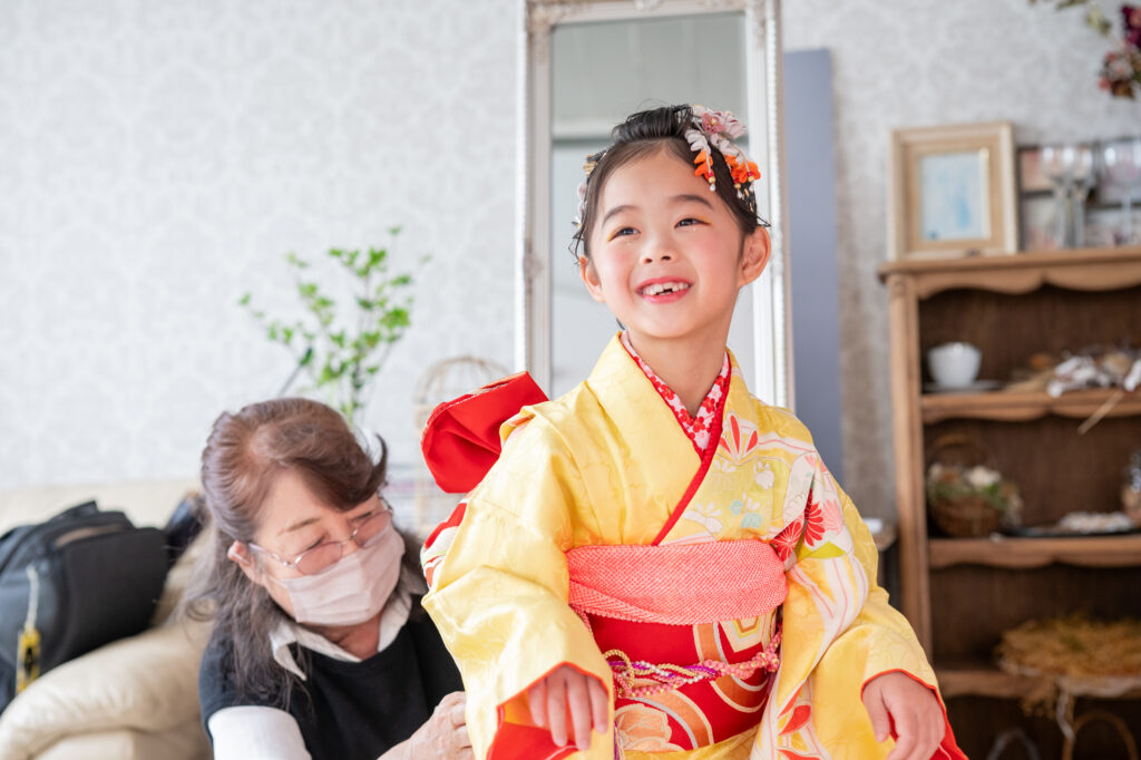7歳の七五三となると、着物の着付けや髪型で少し緊張してしまうお子さんも多いのですが、