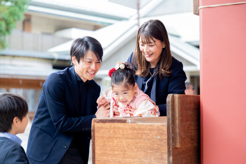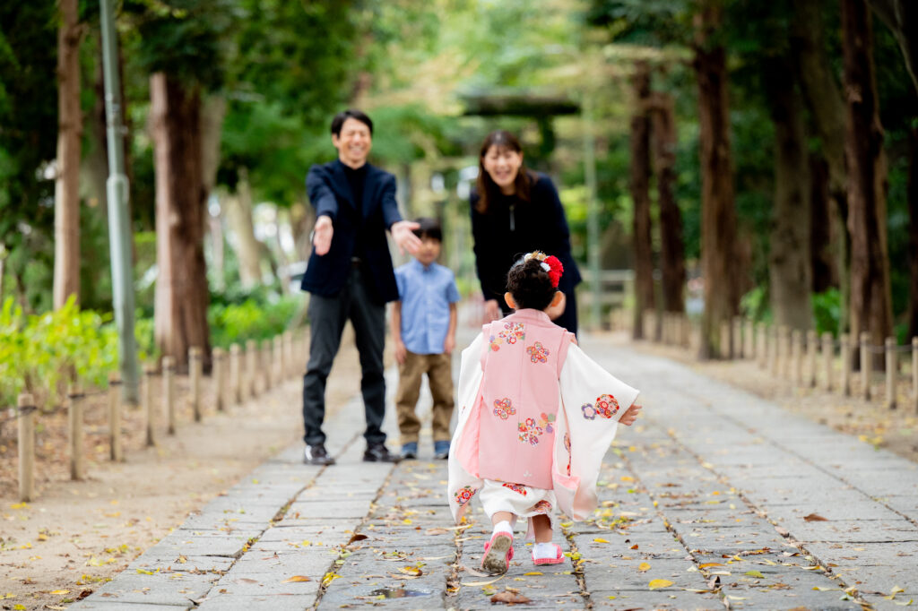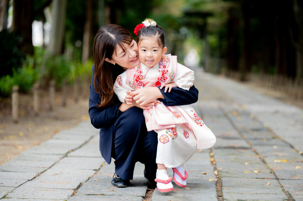 厳かな雰囲気がありながらも、自然に囲まれた優しい空気感があり、七五三やお宮参りなど、ファミリーの記念撮影にもぴったりの場所です。
